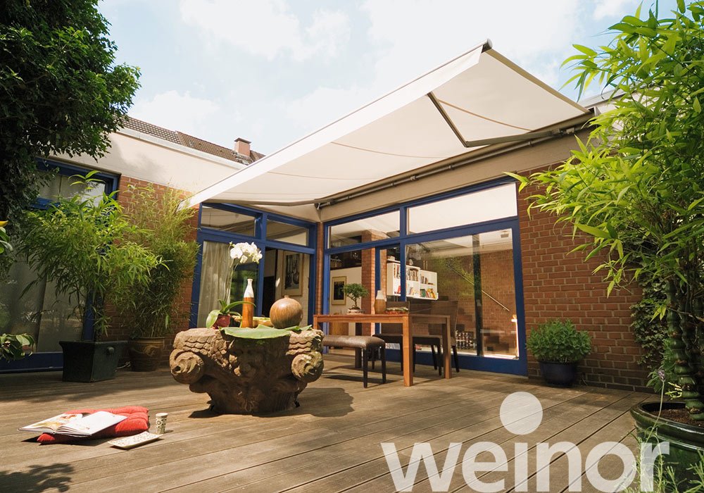 Die perfekte Lösung für großzügige Außenbereiche. Terrassenmarkisen bieten zuverlässigen Sonnen- und Wetterschutz und schaffen ein wohnliches Ambiente im Freien. Verschiedene Materialfarben und Konstruktionsvarianten bieten Raum für Individualisierung. Besonders der Hersteller Weinor glänzt mit Produktvielfalt.